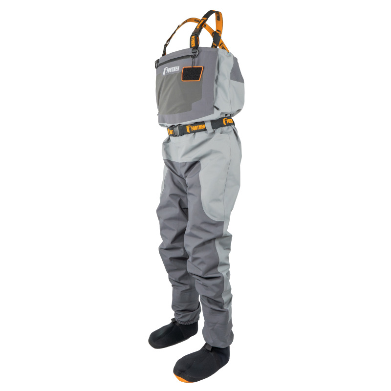 2. Носки из неопрена в конструкции вейдерсов – наиболее предпочитаемый вариант большинством рыболовов, охотников и райдеров, так как в комплекте с правильно подобранными ботинками образуется универсальный по своему назначению и максимально комфортный в использовании вариант экипировки. Неопреновые носки - самое уязвимое место большинства вейдерсов, но только не в данной модели. Технологичный способ герметизации швов с использованием уникальных компонентов обеспечивает особую прочность швам, что гарантирует 100% водонепроницаемость даже в экстремальных условиях эксплуатации.